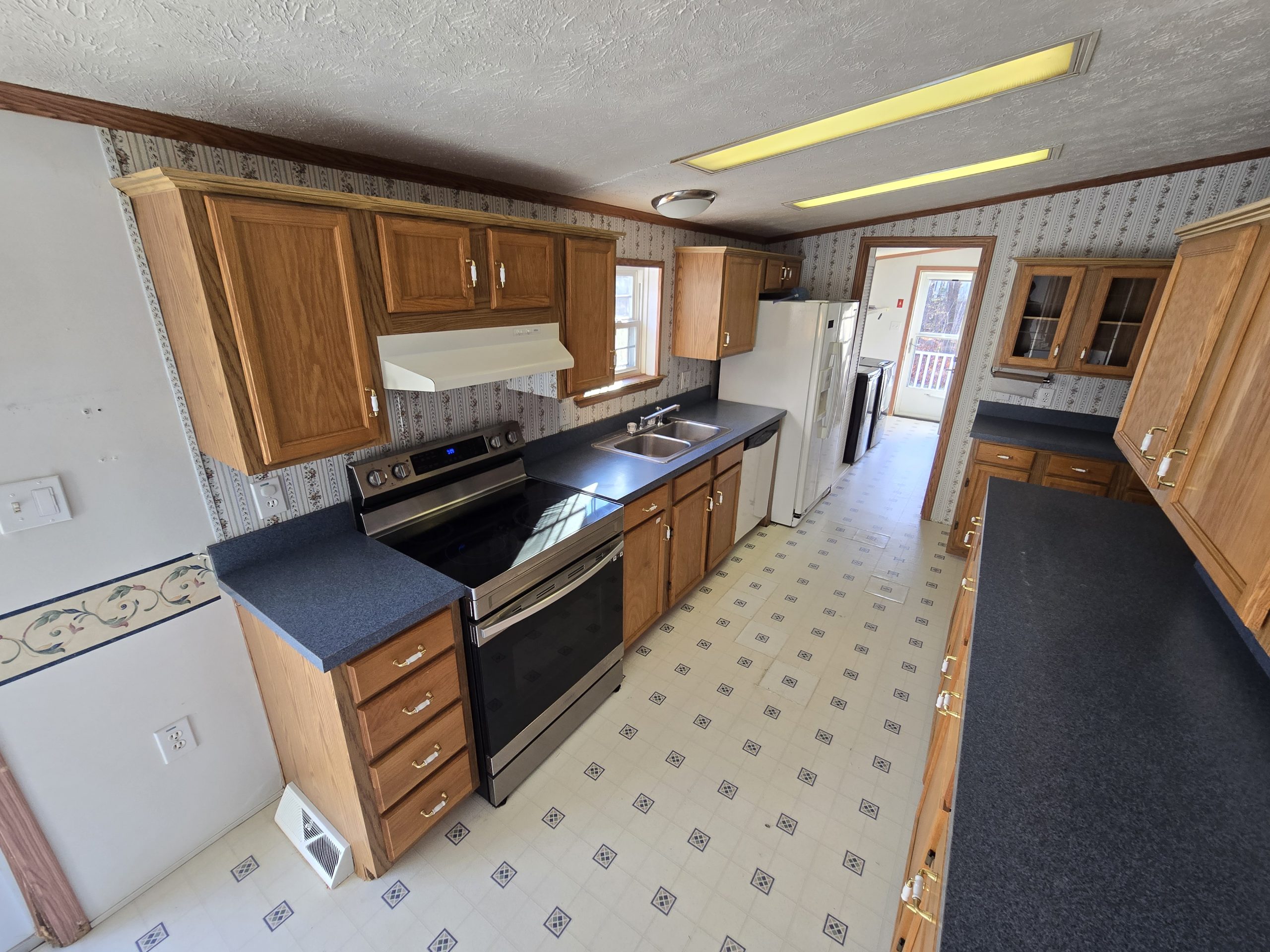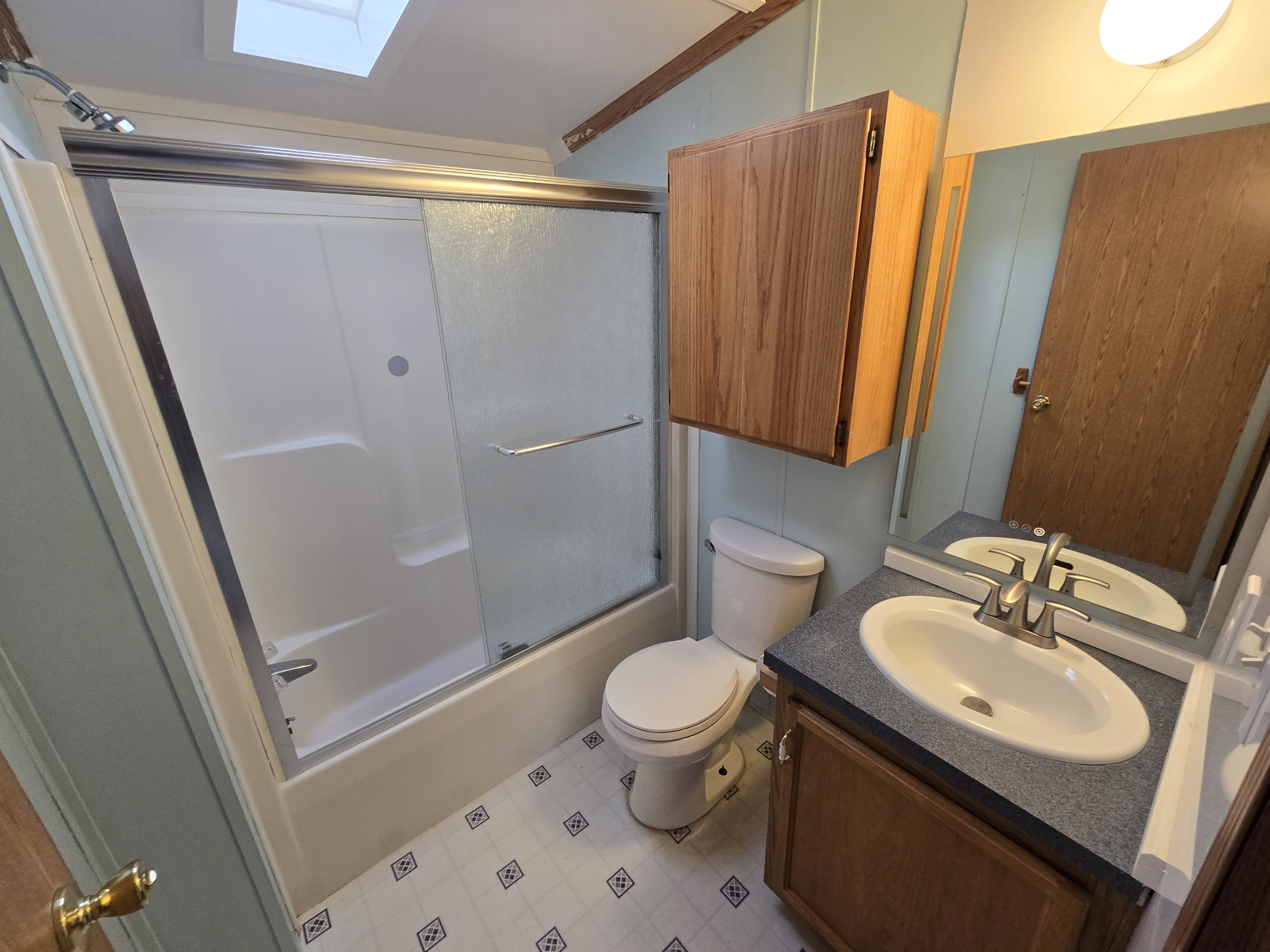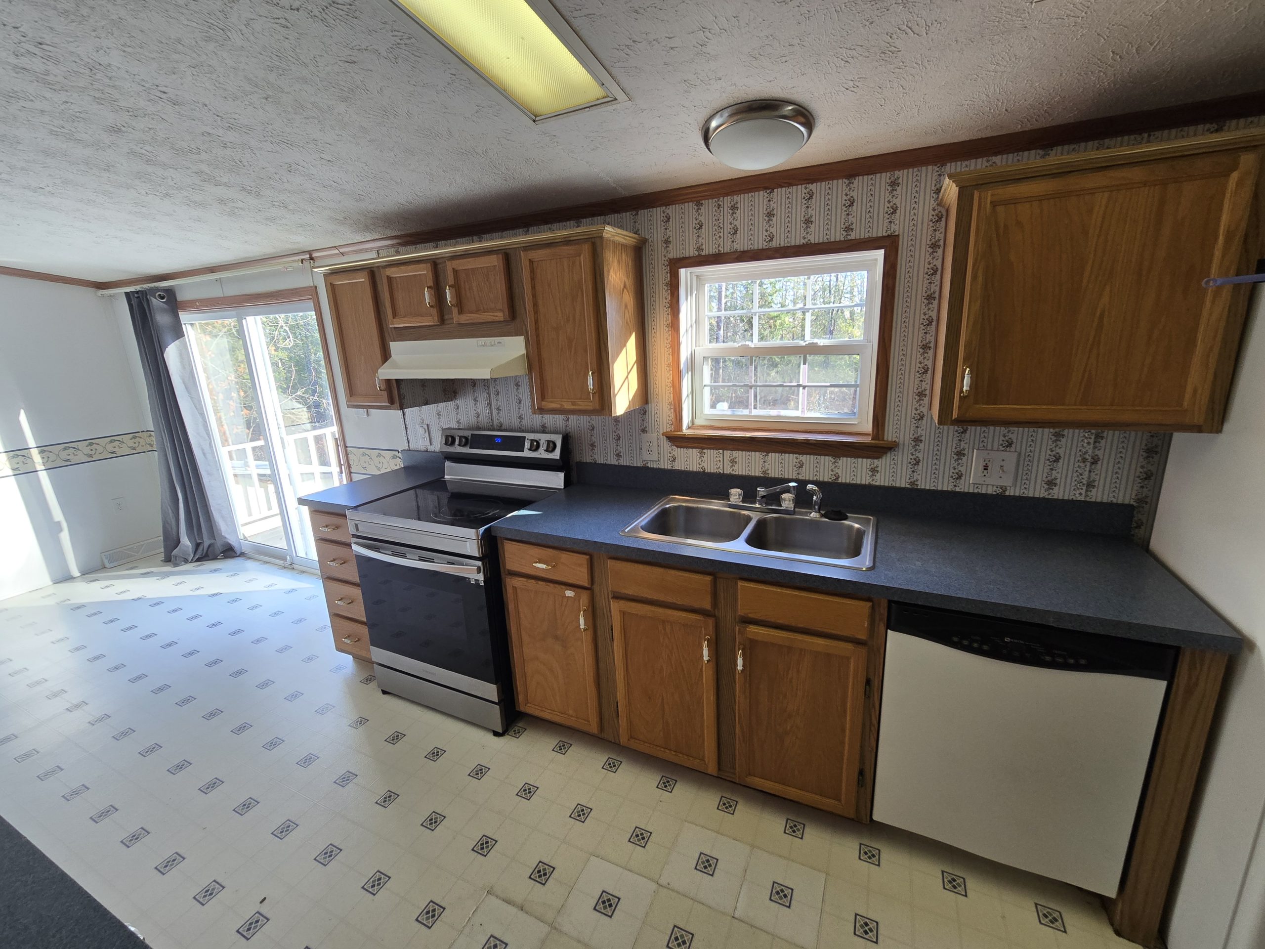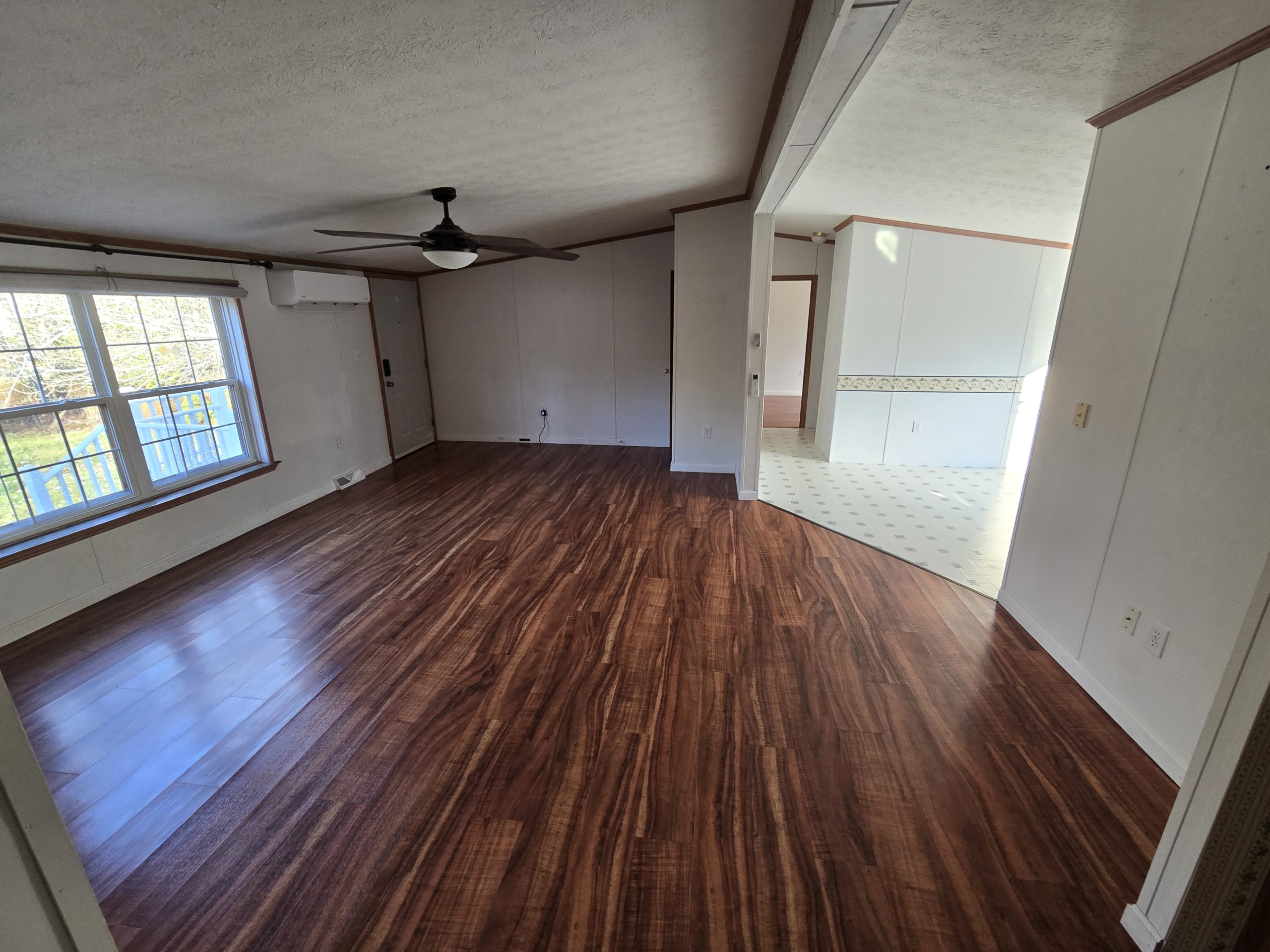 All one floor living in nice double wide located in convenient Hermon location. Home sits on large 1 acre parcel and has good parking, older 1 car garage, large deck with plenty of room to BBQ or just relax. Home has all wood or vinyl flooring so no carpets to trigger allergies. Open concept with large living room, Dining room w/slider to back deck, laundry room and good size kitchen with dishwasher. 2 bedrooms that are good size both with walkin closets plus has full bath right beside bedrooms. Then on other end of home has large master bedroom with its own walkin closest and master bath which has both a soaking tub and separate shower. Price is $1875 + utils for single or double occupancy or $1950 if more people. Available right away.