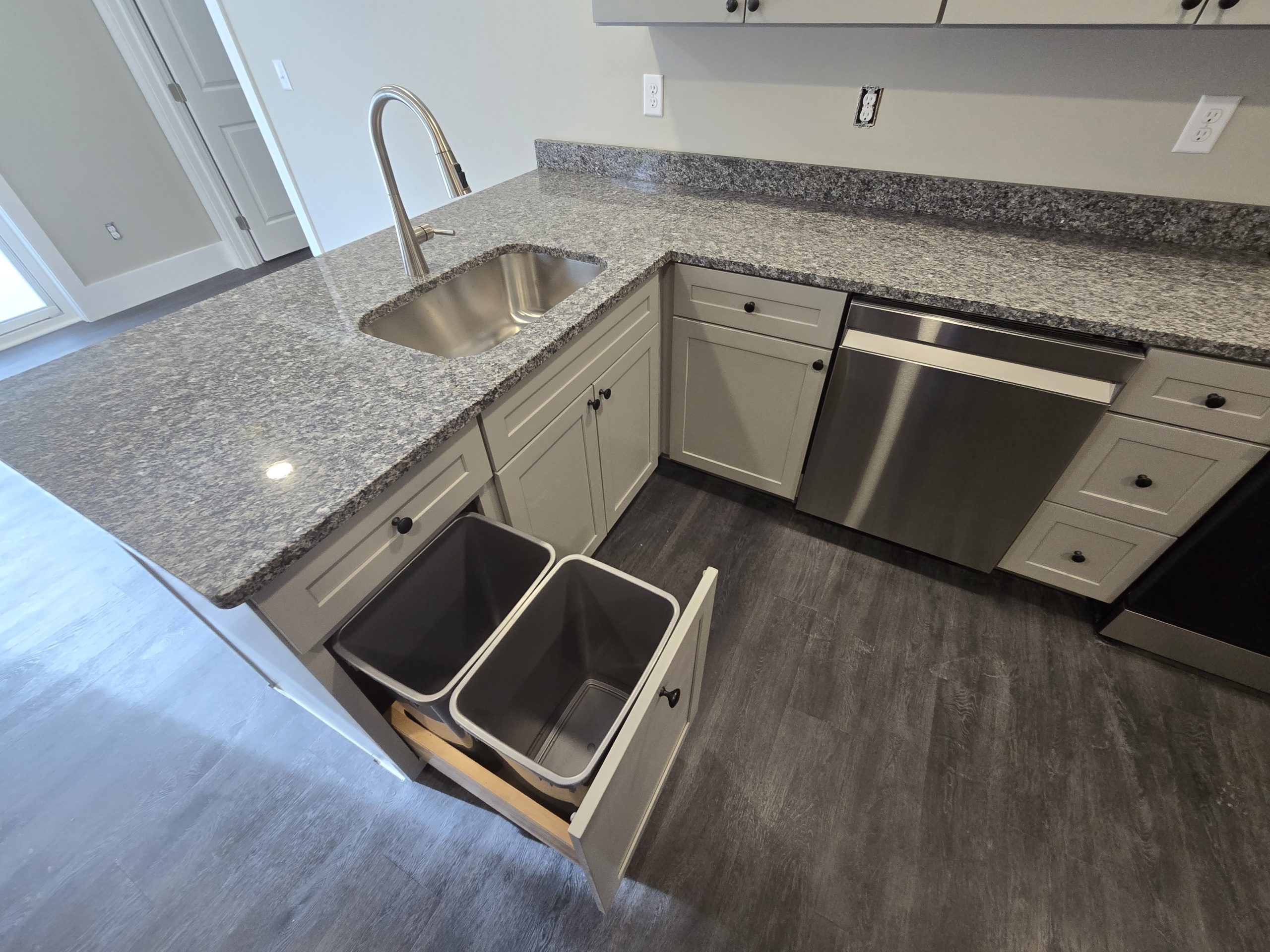 The units all have radiant in floor heat included (heat paid by owner).    Dining area has nice slider door to professionally installed patio which overlooks treed backyard where you’ll see wildlife like deer and turkey all year round.   Park in garage or use garage for storage whichever you prefer.   Property sits nicely back from the road and will have all paved driveway and parking area when finished this coming summer.