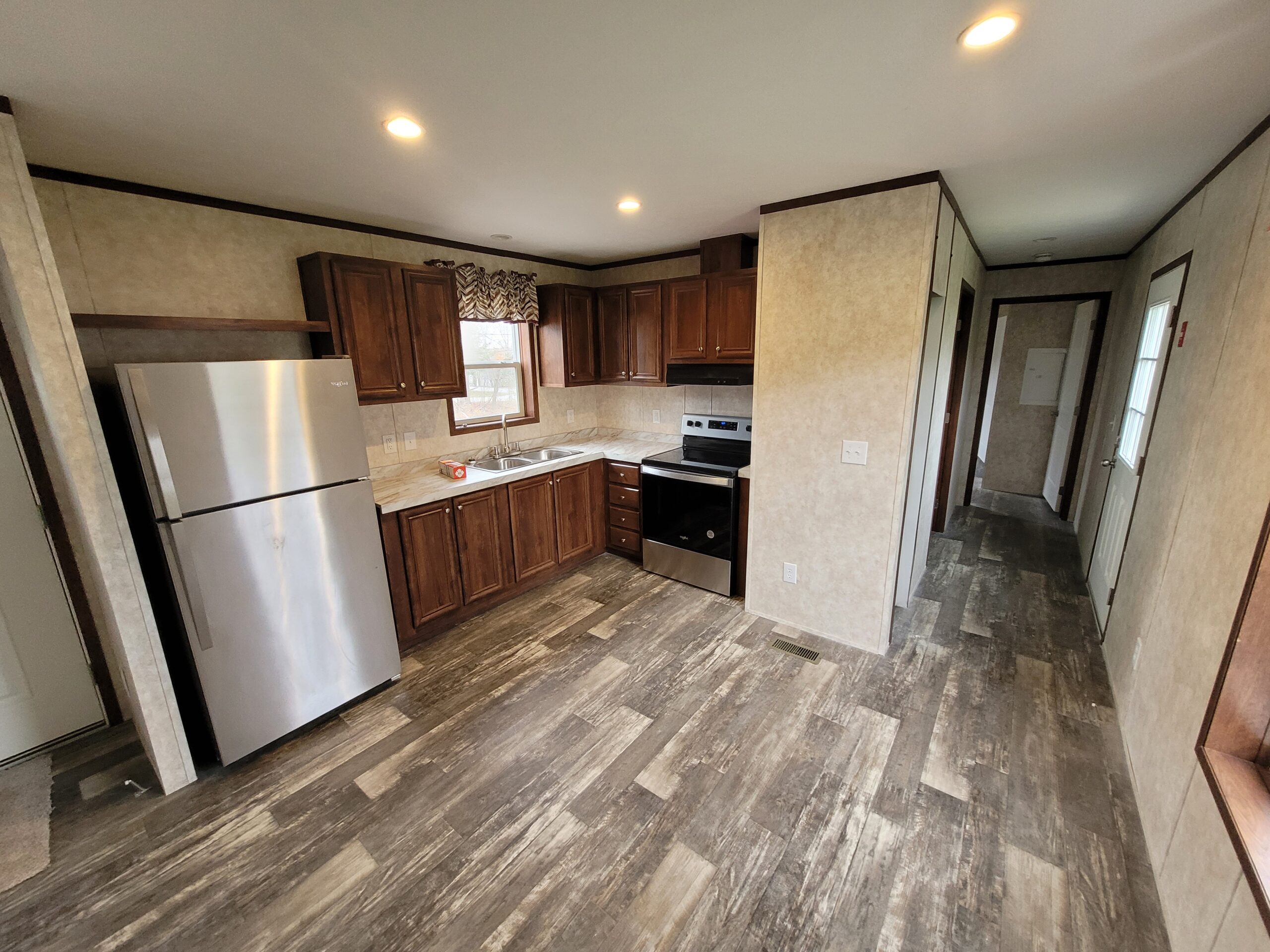 Open concept floor plan has Living, DR and Kitchen with all new appliance to go with new interior and comes with washer and dryer in unit. Has 3 bedrooms and 2 full baths including master suite with its own bath. Comes heated (this is pretty rare for mobile home to include heat) and ready for you to move right in 1st week of March as the only tenant it has is in military and got orders to move out of state. Price is $1600 heated for 1 or 2 people and $1695 for more people which is great price for 3BR