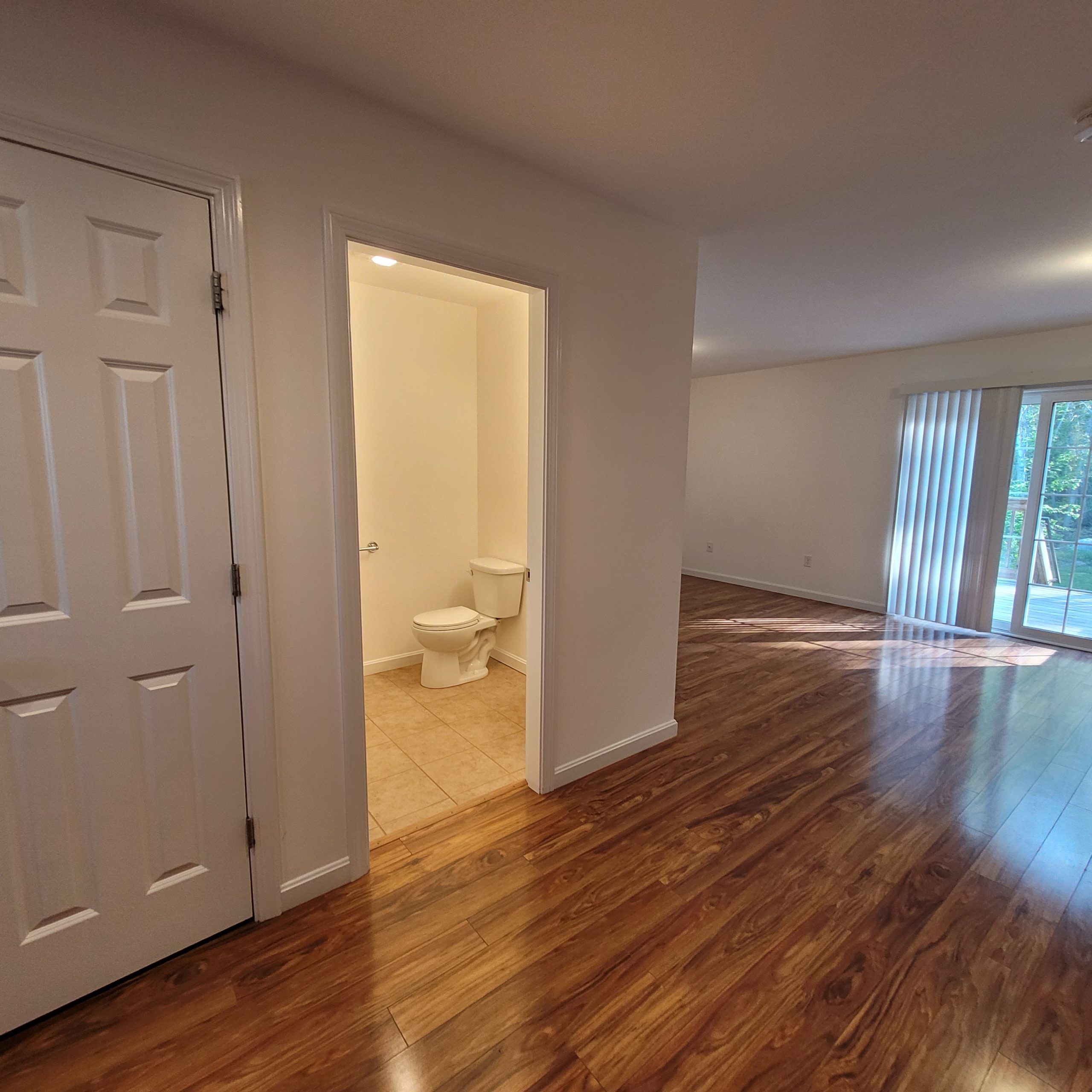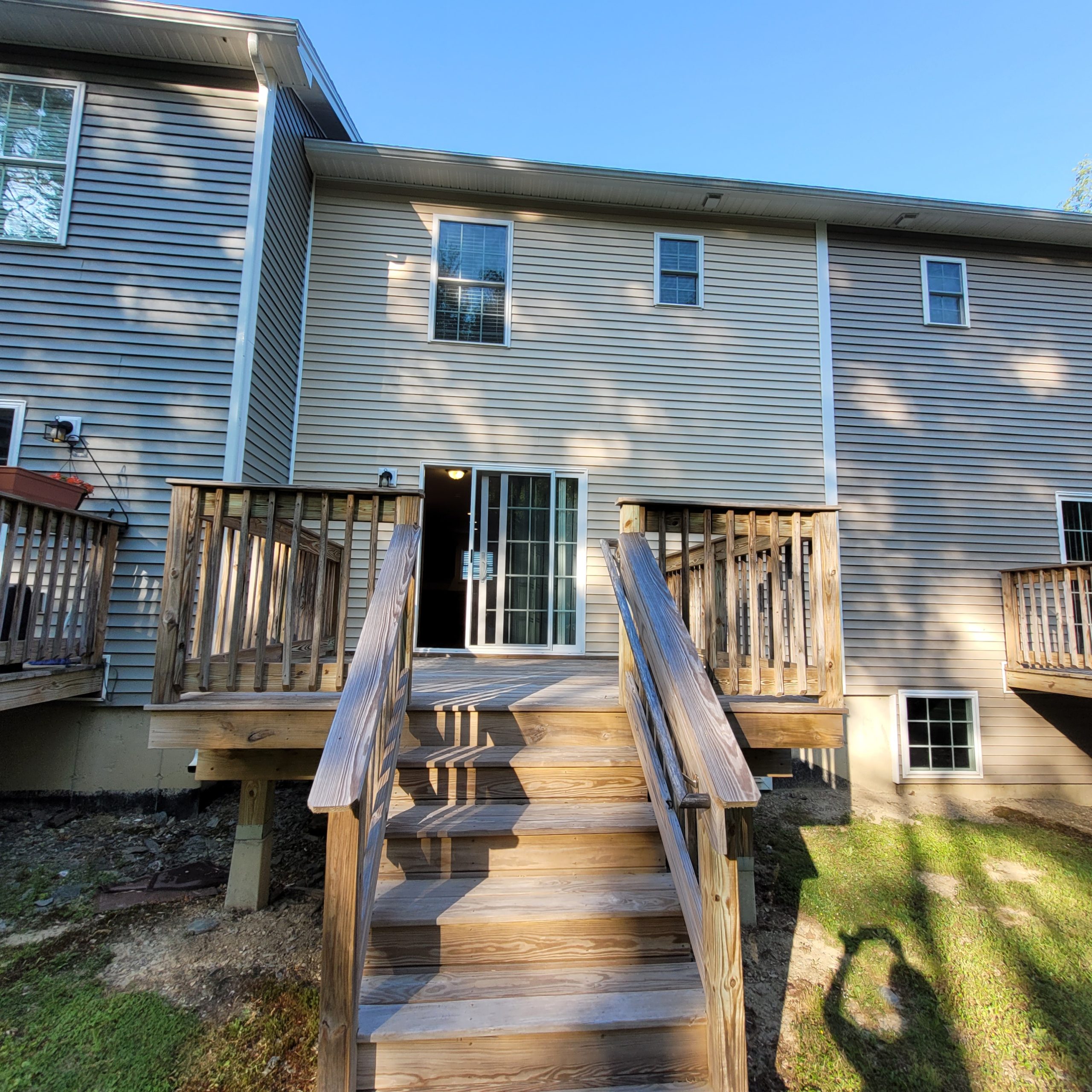 Rare New Build condo is available now! Yes, who knew the middle of Bangor had a large quiet location left? Located right behind Bangor High school and beside Prentiss Woods, a 25 acre forest preserve with walking trails galore. Yet you are just a minute away from anything in Bangor. They are designed with you in mind! All wood floors & ceramic tile thru out (yes no carpet anywhere but the stairs). 1st floor has entry, nice kitchen with stainless appliances including dishwasher and microwave. Kitchen is open to Living room/Dining room area and there’s a sliding door to large back deck with room for table set & grill. There is a 3/4 bath on the 1st floor, so there’s a bath on each level, which is unusual in our area. Full basement for storage down stairs means you don’t have to rent a storage area off site. 2nd floor has large master bedroom with room for a king size bedroom set, plus it has both a walkin closet and 2nd bonus closet. There is also a full bath and a good size 2nd bedroom. Price includes heat, sewer, lawn and snow and is $1900 for single occupancy $1975 for double or $2050 for triple occupancy which is maximum. Tenant just pays electric bill and small water bill. Good parking with 1 or 2 spots per unit available. Inquire with questions and tours are available with completed application! Pets are negotiable so just ask.