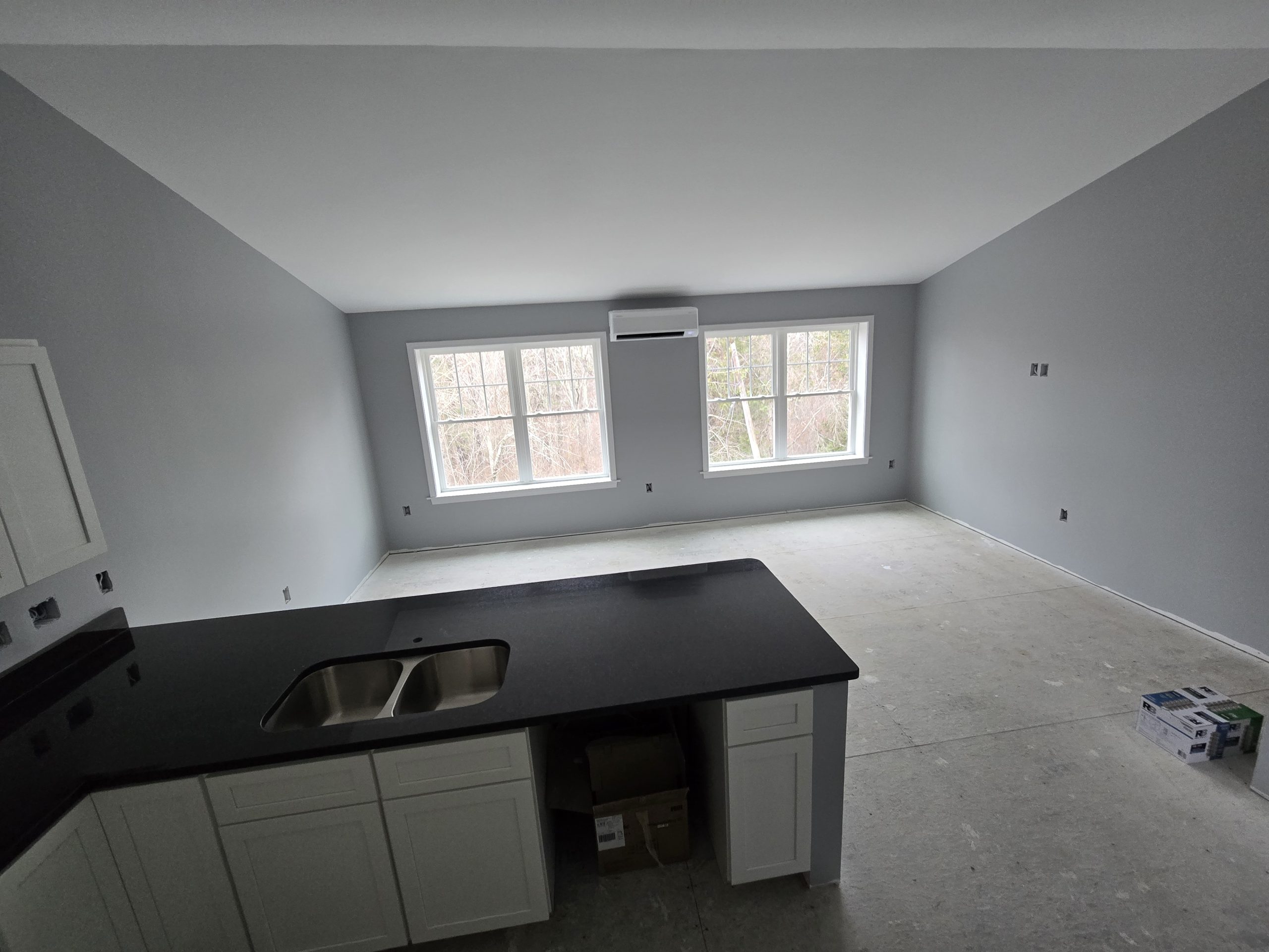 Layout has professional renter in mind. Has 1 car garage and entry w/hidden laundry area, large bedroom or office with it’s own full bath (even has oversized step in shower) and door to back yard on lower level with Radiant heating in slab to provide nice luxury experience. Upstairs has open floor plan with massive cathedral ceiling and cooks kitchen with huge breakfast bar and room for double living room or dining and living room. All stainless appliances will be coming and real solid granite has just been installed. Good size bedroom and the 2nd full bath also on this level and while owner pays the heating they had heat pumps installed to give central air to each unit. Price is $2000 for 1, $2100 for 2 and $2200 if 3 people. Rent includes Heating, water, lawncare and snow removal. Units will be finished for March and April occupancy