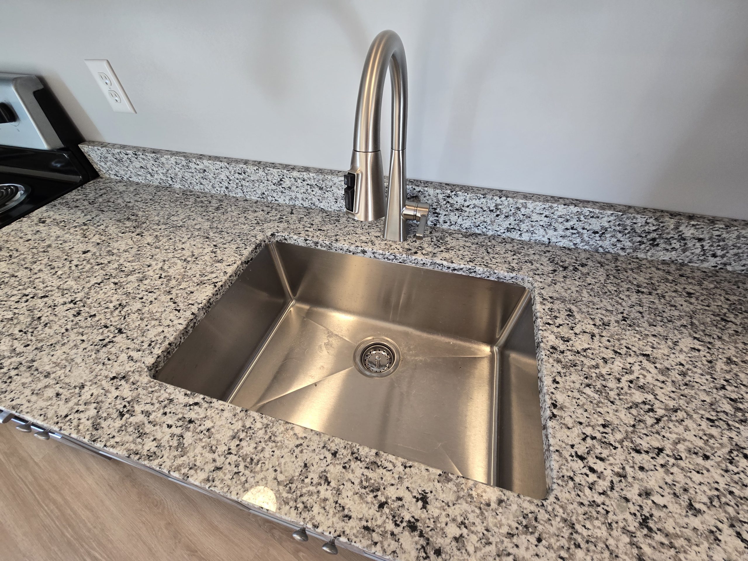 This unit is open concept 1 bedroom plus office or mud room. Kitchen has all stainless appliances included, deep bowl sink, faucet with pull out sprayer and custom slow close drawers and cabinets. Open concept has Kitche open to good size living room and dining area. Gleaming Real hardwood floors in living room and BR Bedroom is good. Bath has large shower and granite top vanity