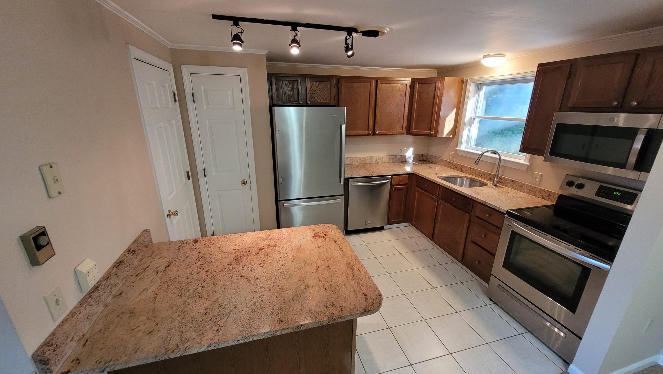 Located in one of the most desirable condo groups in Bangor, this unit is nicely updated with higher end taste in mind. Spacious rooms in this 2 BR 1.5 Bath condo. Kitchen updated with solid granite countertops, high end stainless fridge(with bottom freezer) & dishwasher w/stainless inside. Also renovated upstairs with new wood floors in both bedrooms & updated bath with large 2 person shower that is handicap accessible. Floor plan is 1st floor with living room including coat closet, dining room, kitchen with breakfast bar & pantry plus 1/2 bath. Upstairs has large master bedroom with double closets, 2nd medium size bedroom, full bath which has w/d already installed. Also has entire 3rd floor walk up attic for great storage which everyone needs! Walking distance to Husson, close to both St Joe’s & Northern Lights plus and just 5 minutes to I95 for UMaine or other area easy access. It includes the heat & condo association fee(maint, lawn and snow included). Tenant pays just electric and water/sewer. If you’re looking for something not 100 years old this is a must see. Cat friendly only, sorry no dogs. Small fenced backyard with deck for grill. 2 Parking spots off street. Price of $1800 single occupancy, $1875 for double or $1950 for triple and available immediately!
