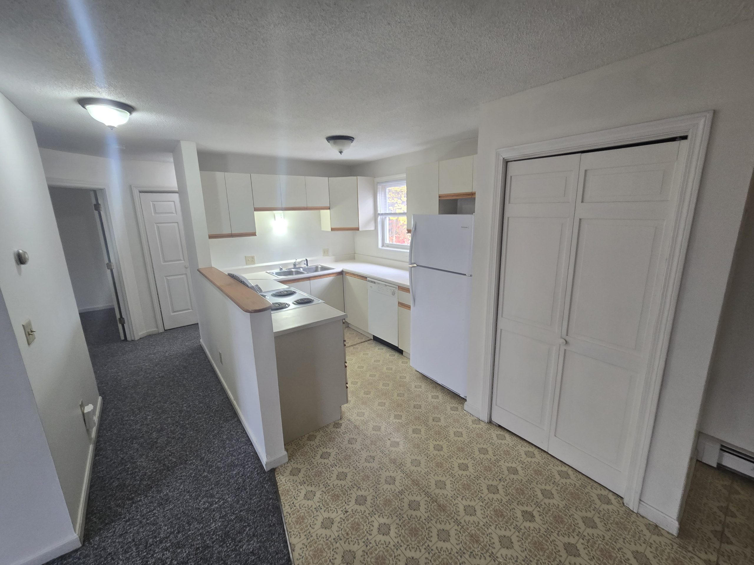 Rare affordable 2 BR (or 1 BR plus office) that is 1st floor and has coin op laundry and free storage unit in basement. This is quiet 4 unit building with long term owner who’s kept property up. This unit is newer then most in Bangor area having been built in 1988 and has open concept Living room, dining nook and kitchen. Kitchen is galley style but U shaped so much bigger then many apartment kitchen and has dishwasher. Dining nook has back door to nice yard and there 1 good size bedroom and 1 small bedroom/or use for great office/hobby room and a full bath. Don’t wait as this is rare affordable unit. Price is $1350 for 1, $1425 for 2 and $1500 for 3 people. Pets negotiable and unit available immediately with owner paying heat, hot water, lawncare, snow plowing, water and sewer.