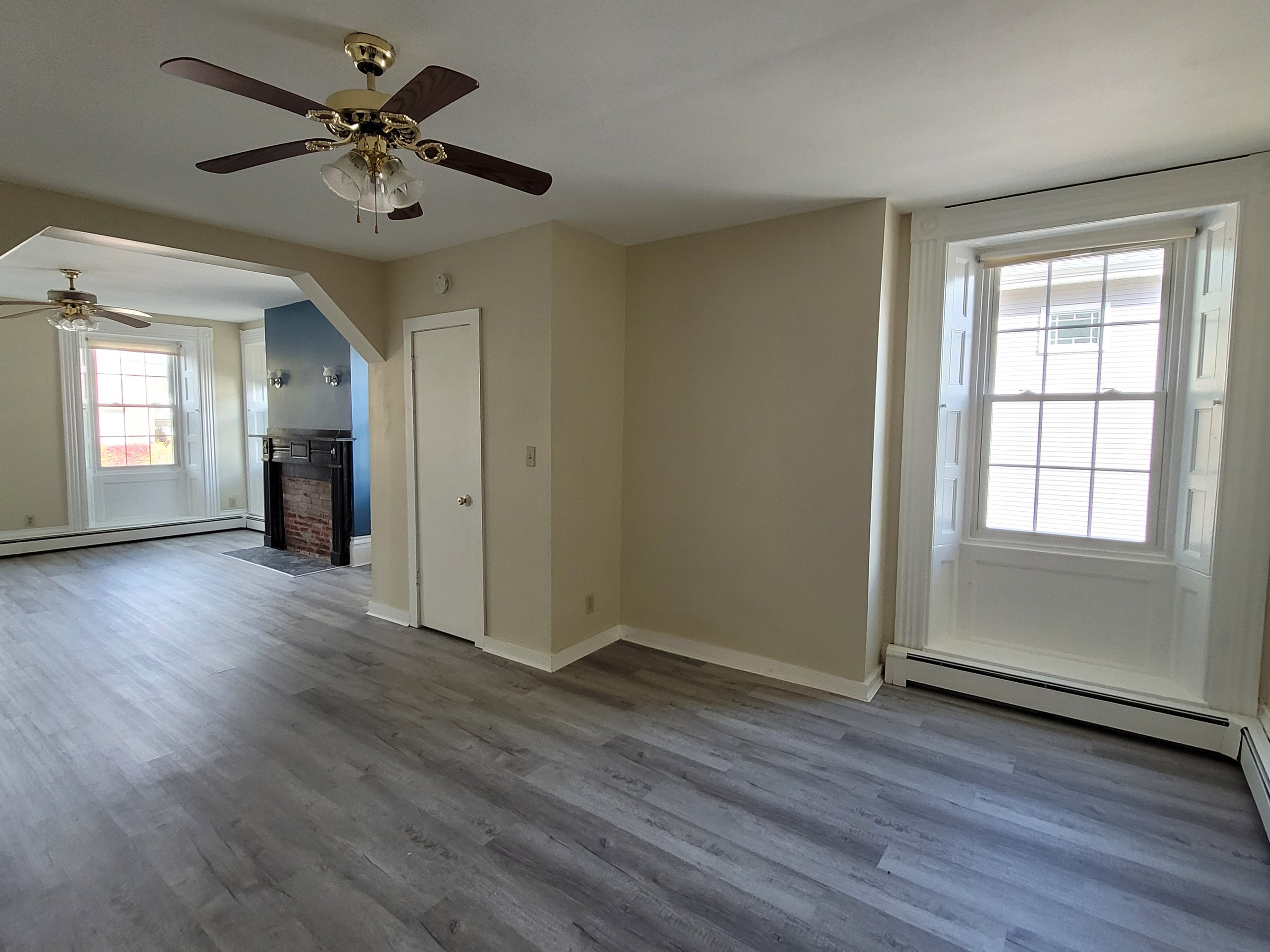 Especially spacious 2 bedroom on the 1st floor. Unit has double living room (or living room & dining room/office) with stunning fireplace mantel. 2 bedrooms, full bath and large eat in kitchen with tons of cupboard space and breakfast bar. Price is $1475 with heat and HW included for 1 person $1550 for 2 or $1600 for 3 people. Unit has own w/d hookup but also coin op w/d in building. Spacious parking area with 2 off street parking spots. Great location walking distance to downtown and close to all Bangor offers. Pets considered. Available immediately