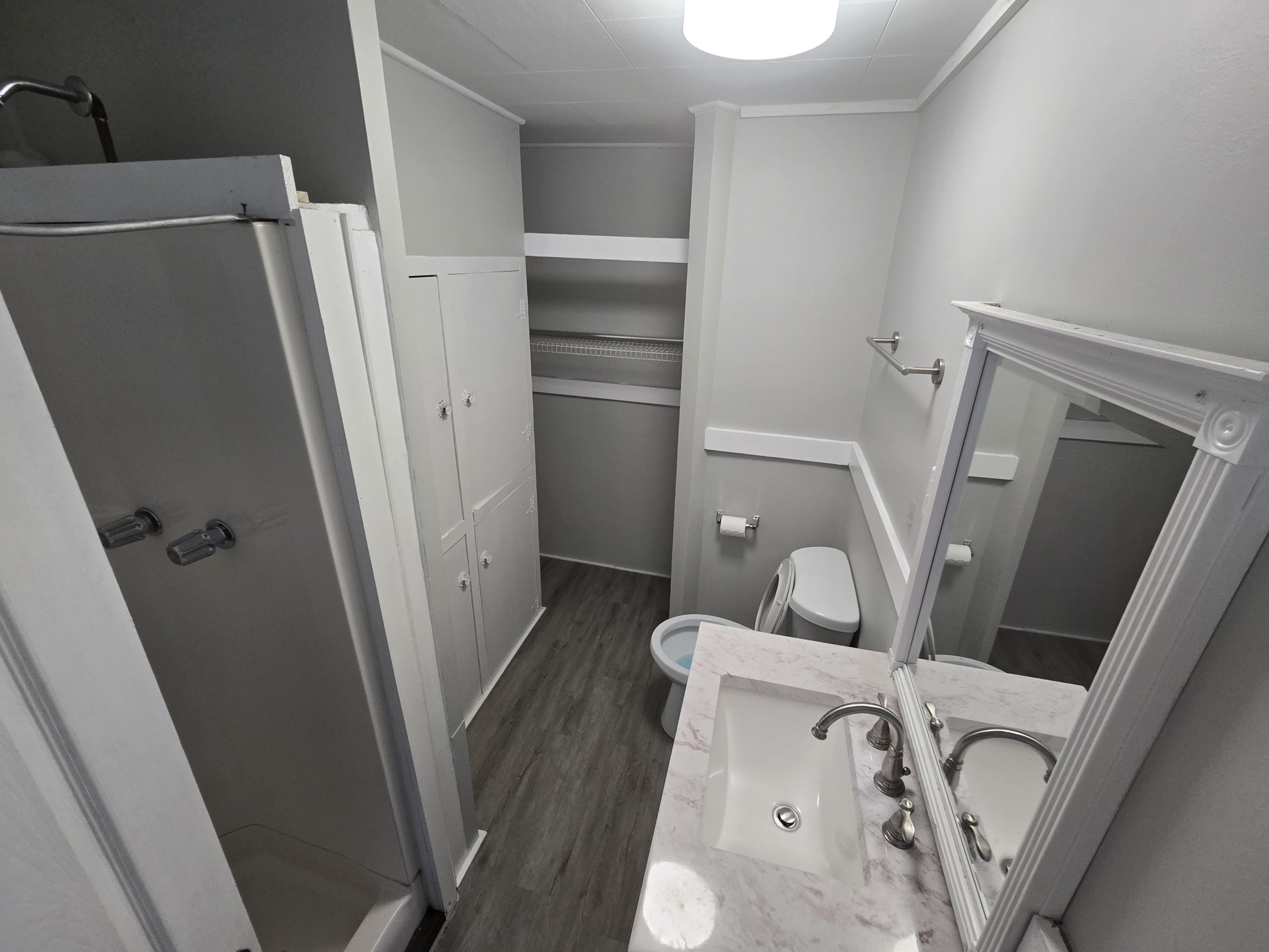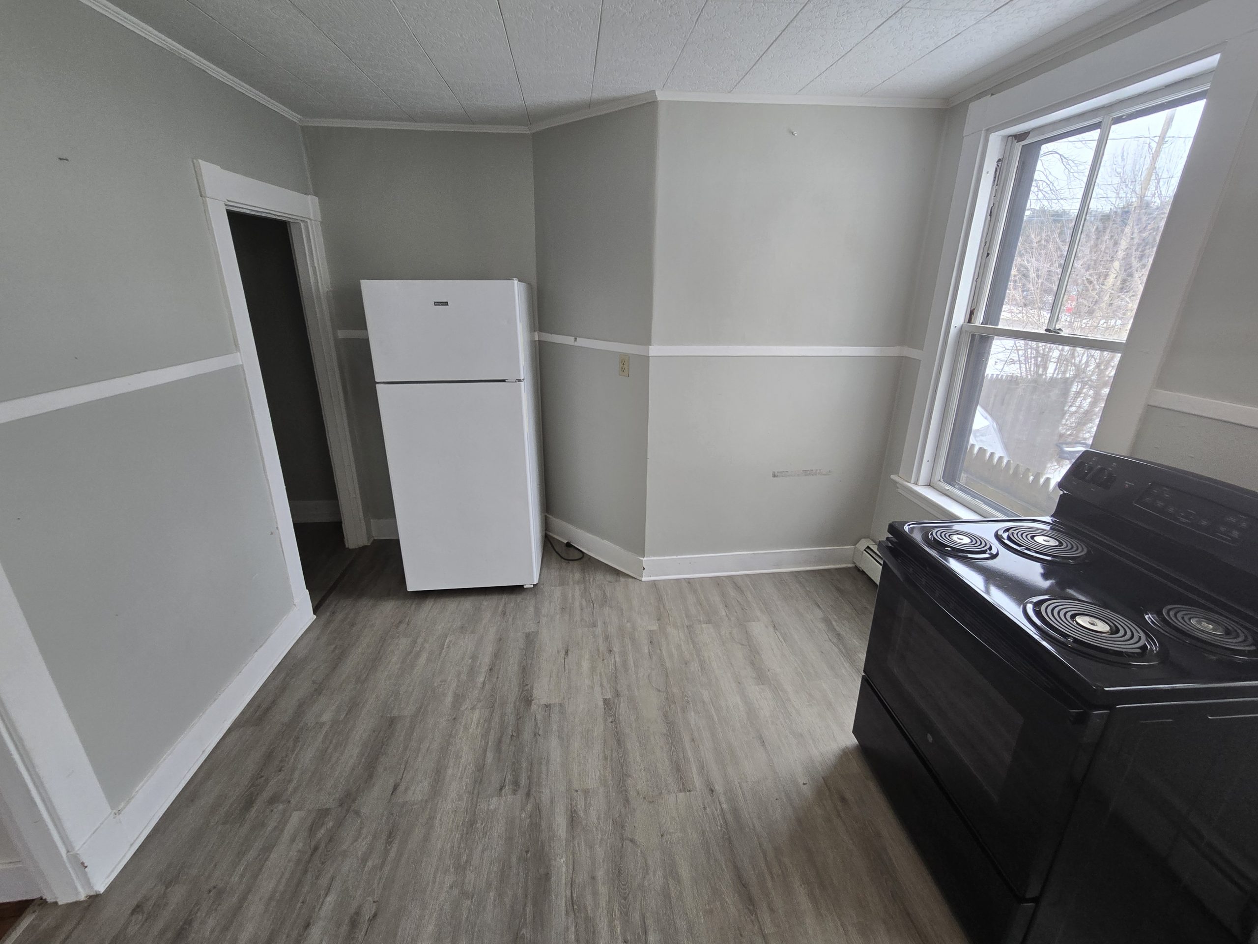 Unit is being painted and final odds and ends will be done within a week. Video tour just taken to show space and layout, new one coming after completion if it lasts that long.