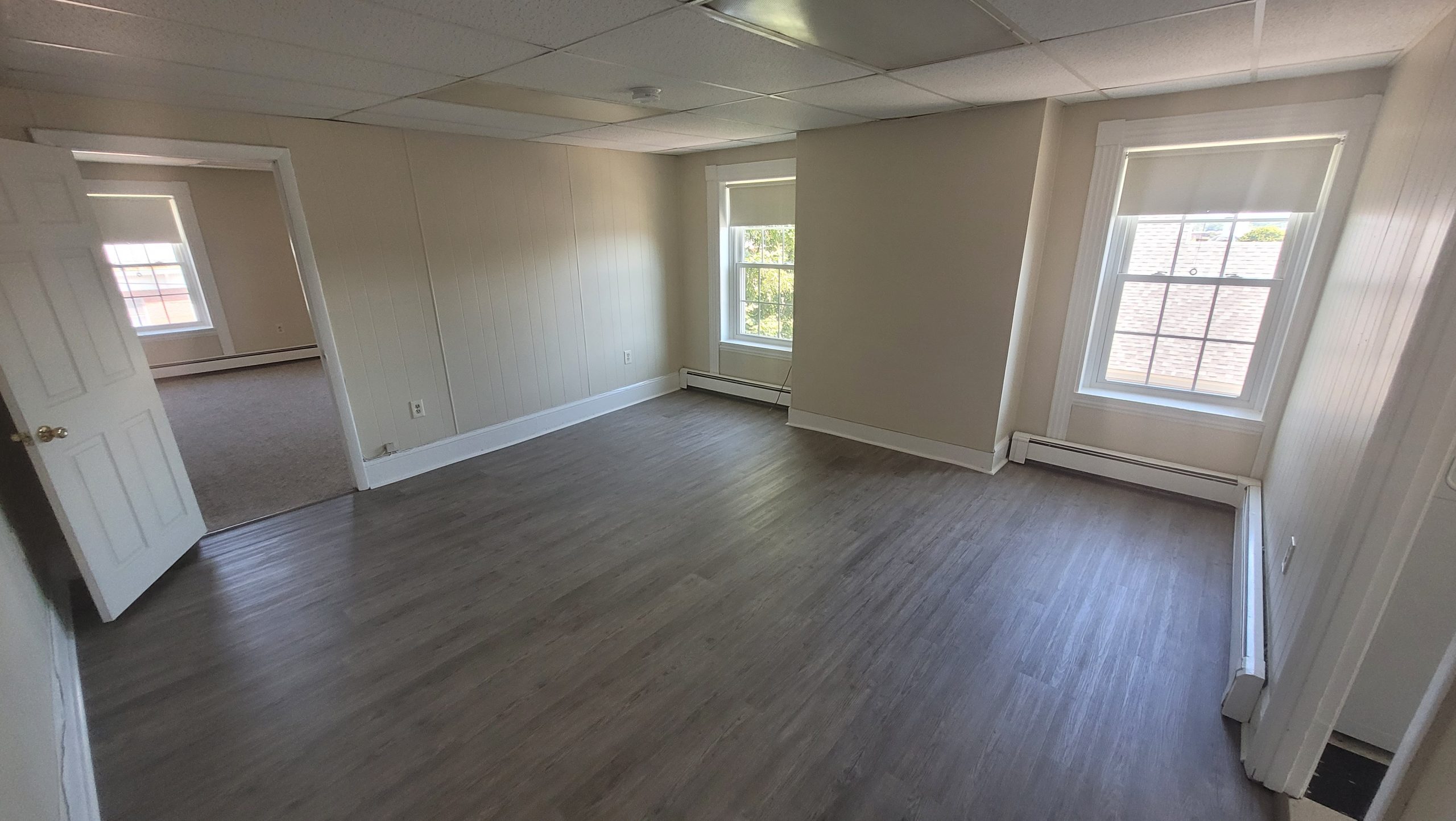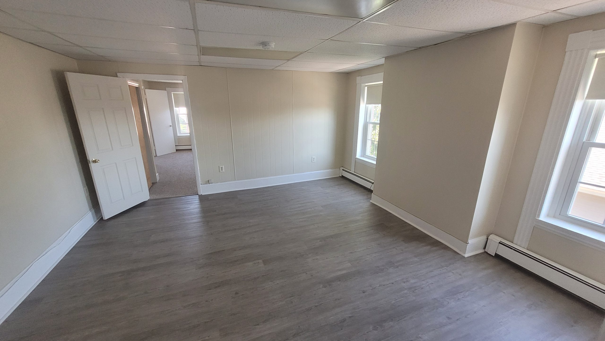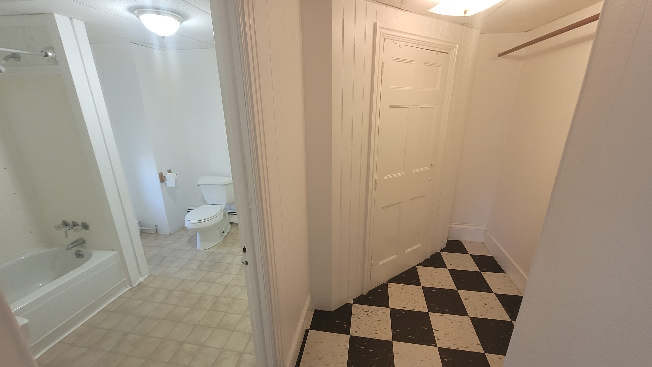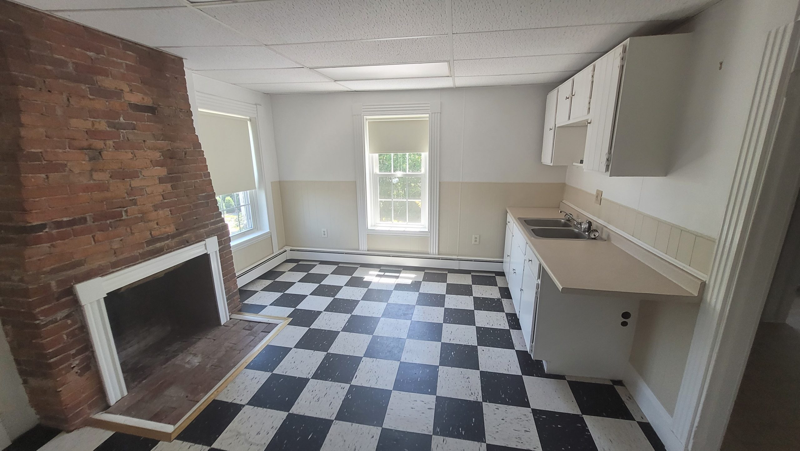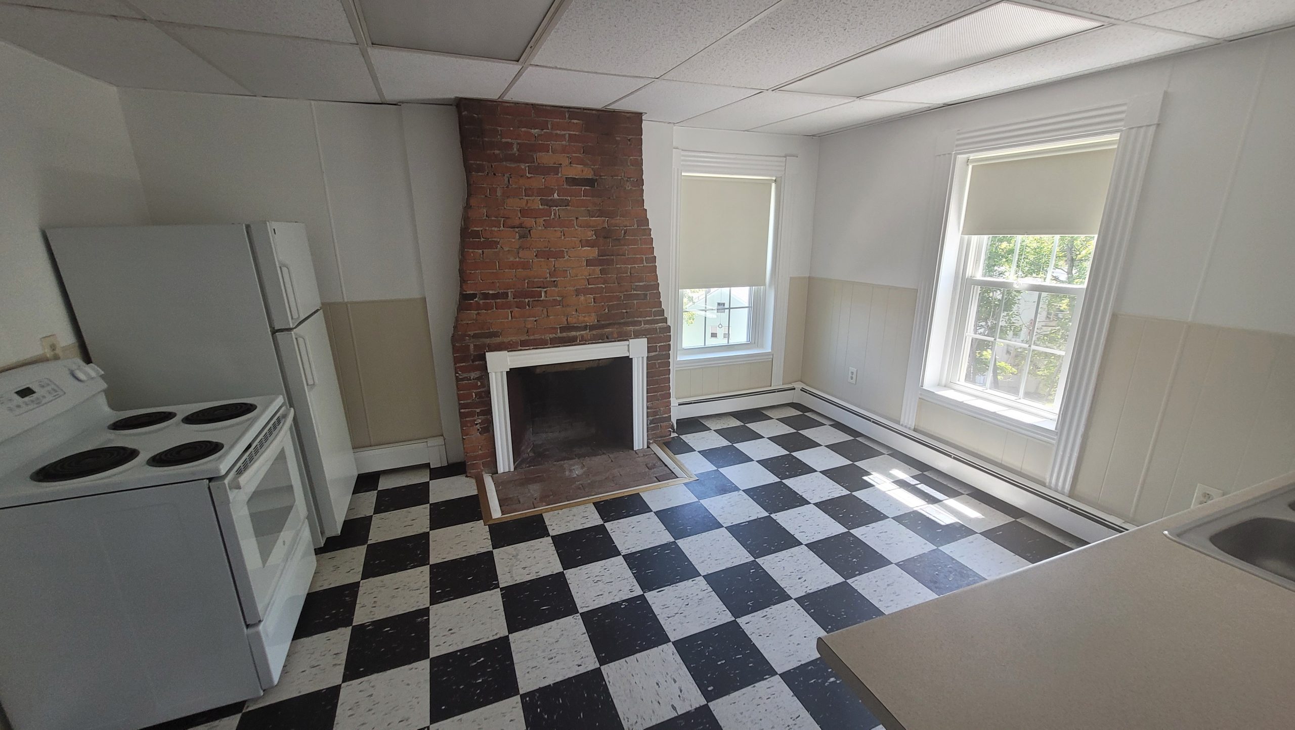 Spacious 3rd floor 1 bedroom in 4 story Brick walk up. Each room has 9 foot ceilings. Unit has living room, 1 large bedroom plus has small office or walk in closet off of the BR, full bath and large eat in kitchen which has exposed brick fireplace for nice asethic. Price is $1200 for 1 person or $1300 for double occupancy with heat, water, sewer, snow and lawn included. Also has coin op w/d in building and spacious parking area with 1 off street parking spot available and 2nd spot could be available if needed. Great location walking distance to downtown, on bus route and close to all Bangor offers. Available Now!