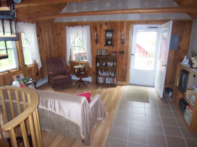 Very Rare Year around Lakefront 2 BR + loft home on Chemo Pond. Nestled among the pines in a great waterfront cove. Rest in the hammock, play horseshoes or just sit on the wraparound deck to enjoy the water. 1st floor has large open floor plan that offers all 1 floor living if desired (master bedroom, bathroom and laundry are all on main level). 1st floor has living room & dining area overlooking the water and Galley kitchen with a slider to the deck. Also has updated bath with 2 person shower plus washer/dryer and a master bedroom with queen size bed. Has all ceramic tile and hardwood click flooring. Spiral staircase into the basement which has a large family room and the 2nd bedroom with queen bed. Basement is walkout on the waterside of the home. Also has loft with 2 single beds or put the two together for a king size. Home comes furnished and is $2650 a month + utilities for 12 month lease for single occupancy or double occupancy, $2750 if more people.
